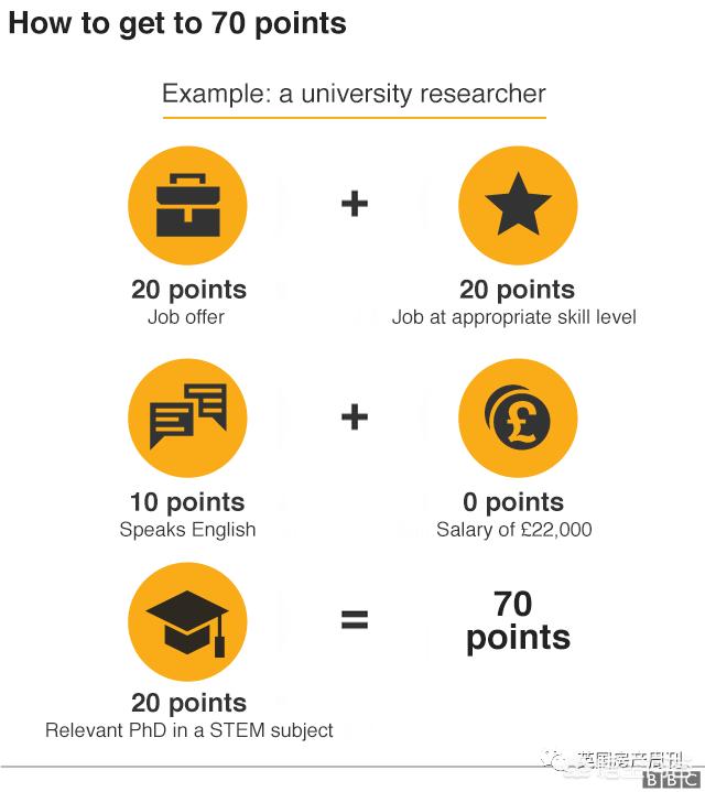 如果是一名無法講英語的建筑工人,但得到了一份年薪18,000英鎊的工作邀請,那么這位申請人只能獲得20分,將被阻止到英國工作。