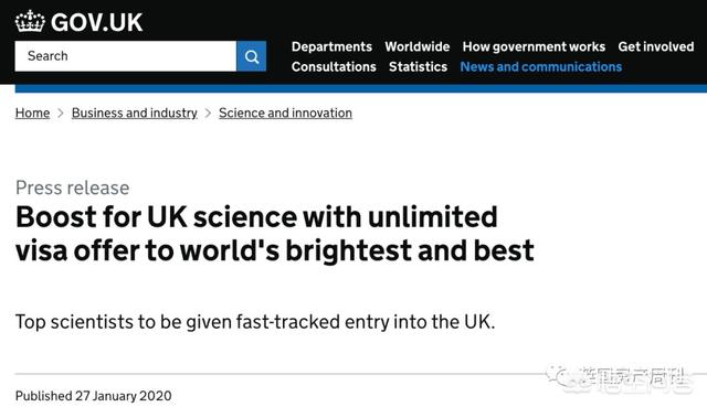 1月27日英國內政部宣布推出“全球人才簽證”(Global Talent),吸引高技能的科學家和研究人員。