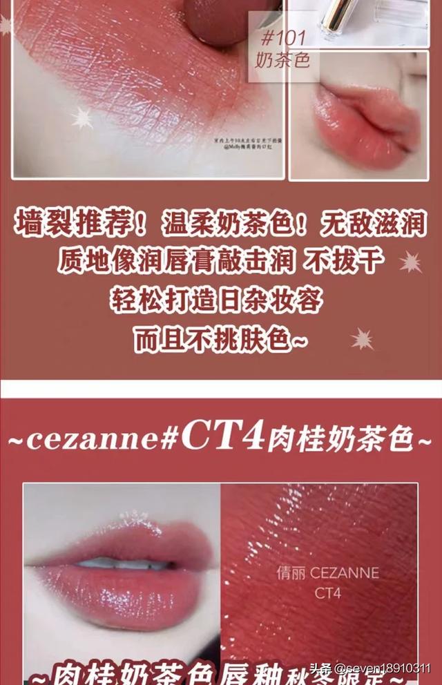 7.倩麗的ct4和101,都是非常溫柔的奶茶色,感覺秋天唇部干燥的可以試試這款,非常自然,可能品牌比較小眾一些,但是很好用,非常正的日雜風。