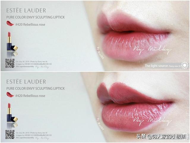 雅詩蘭黛420,大表姐色,是我目前最喜歡的用的,薄涂不管是素顏還是妝后都好看,厚涂就會偏成熟一些,適合秋冬,顏色也不會特別重,主要是滋潤,滋潤,滋潤的情況下,顯色度還特別好!棒棒噠!
